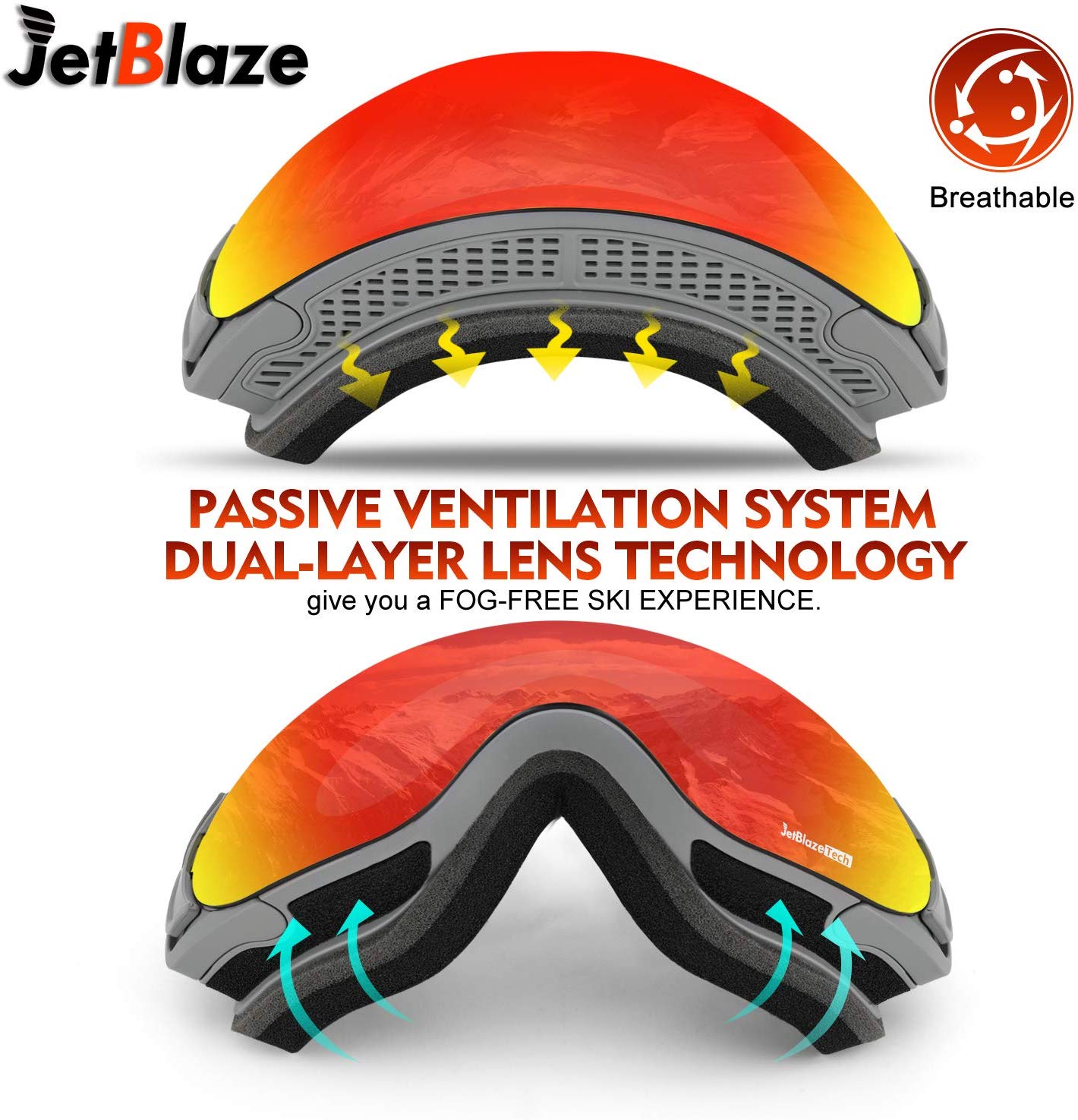 Double-layer lens design and high performance hydrophilic coating on the inner side minimize the chance of fogging.