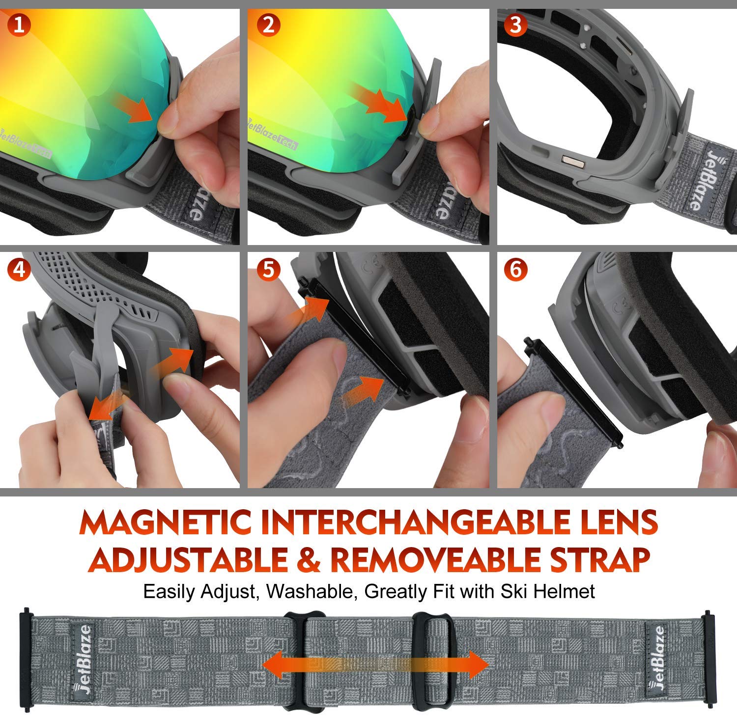 The extra long adjustable strap allows for helmet compatibility with any helmet. Perfect goggles for both men, women & youth.